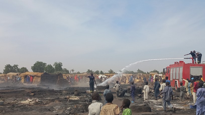 The devastating fire that broke out around noon at Muna camp for internally displaced persons wreaked havoc, engulfing numerous homes, particularly those constructed with thatched roofs. It wasn’t until approximately an hour later that the firefighters arrived on the scene, desperately battling the flames.