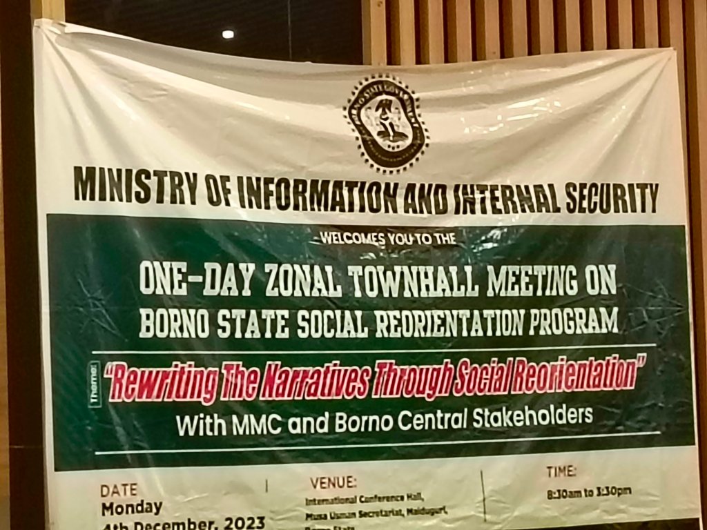 The town hall meeting of the Borno State Social Reorientation Programme is part of Governor Babagana Umara Zulum’s efforts to enhance Human Capital Development, which is one of the main focus of Borno State’s 25-year Development Framework and 10-year Strategic Transformation Plan.