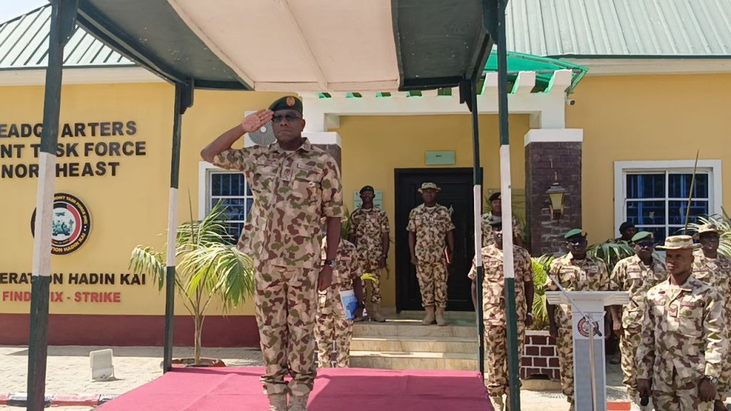 The transfer of command was ceremonially marked by the traditional lowering and hoisting of command flags, symbolizing the beginning of General Shaibu’s tenure and the continuation of Operation Hadin Kai’s mission under new leadership.